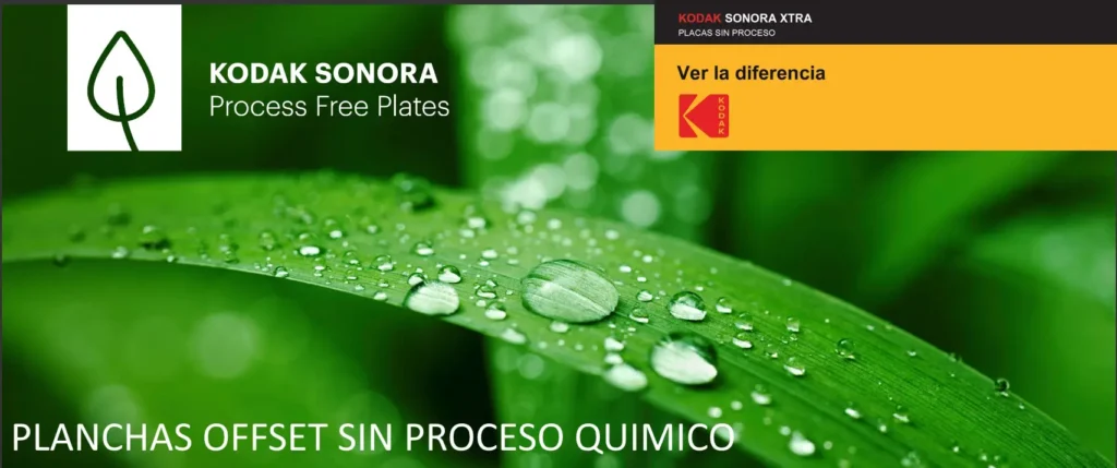 El cambio de planchas procesadas en húmedo a planchas sin proceso KODAK SONORA elimina por completo la electricidad, el agua, el revelador, el rellenador y la solución de engomado necesarios para el procesamiento de planchas tradicional. Como no se utiliza ningún producto químico y ningún procesador de planchas necesita limpieza y mantenimiento, tampoco hay residuos químicos ni líquidos residuales contaminados que deban desecharse.
